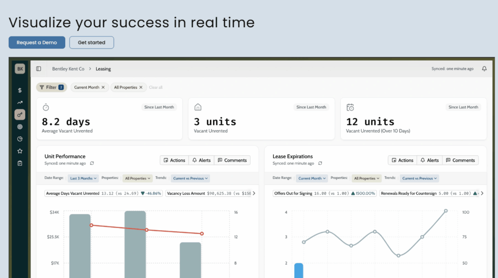 • Set alerts for KPIs like delinquency spikes, occupancy dips, expense variances, or workflow delays